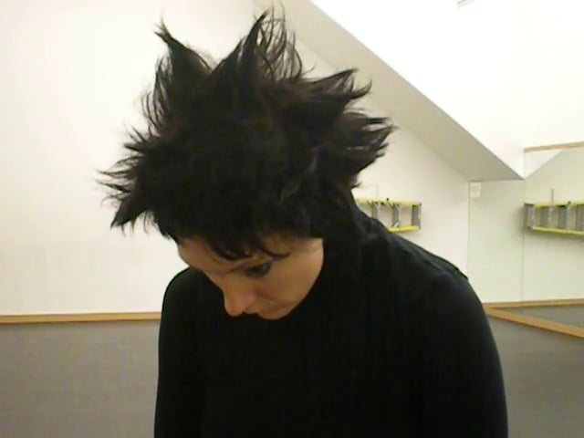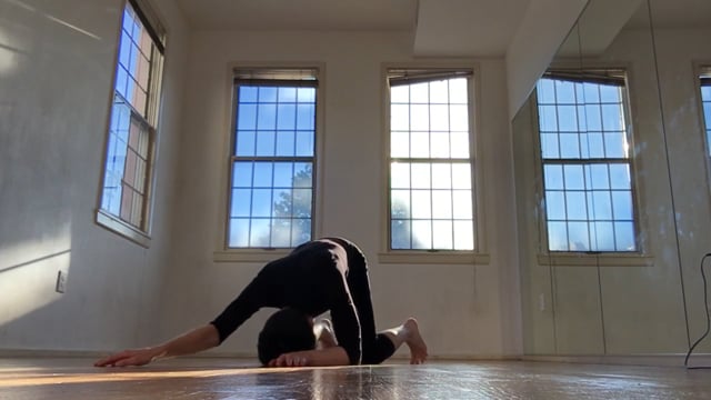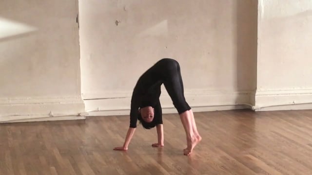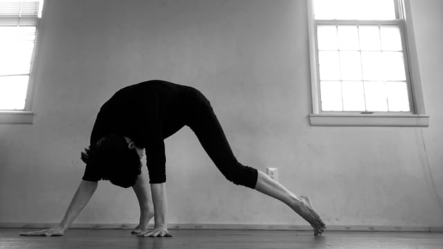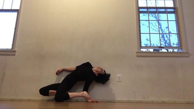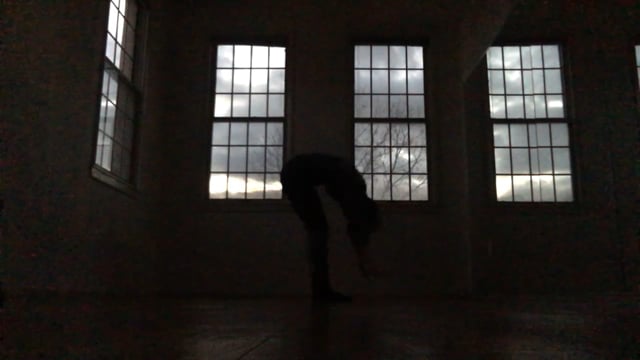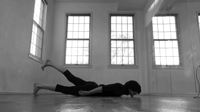 A solo work in regress, or digress—discord in a body not having got it together, a fragmented figure, limbs akimbo, a body not in agreement with itself, parts breaking down, a clunky decay, like a Beckett character, seeking to stop by going on. Until the bell of silence. An improvisation for Movement Research Open Performance. Video documentation by Chris Carlone.
